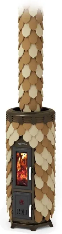 Модификация с керамическими изразцами цвета шамот-терракота с декорированным дымоходом