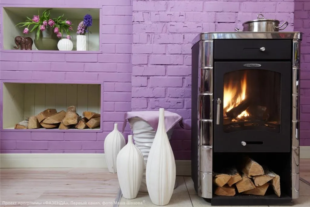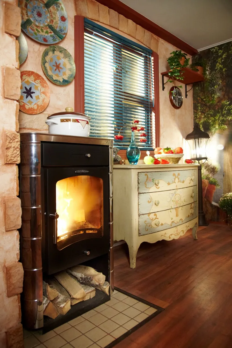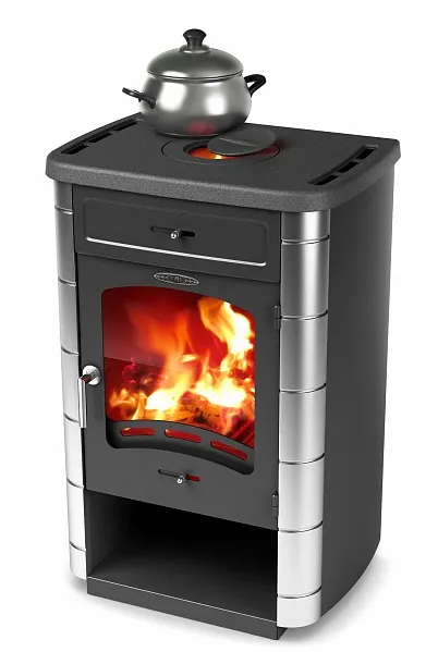 Печь сочетает в себе эффективный отопительный прибор, удобную варочную печь и красивый камин