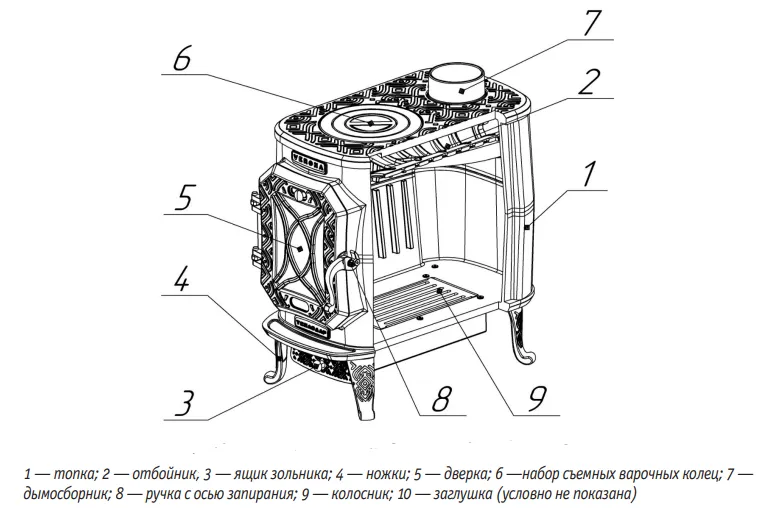 Сама топка печи цельнолитая, благодаря этому конструкция максимально жёсткая и надежная. Отливается печь из серого чугуна СЧ20 (ГОСТ 1412-85) толщина топки от 10 мм. Снаружи печь окрашена термостойкой кремнийорганической краской.
