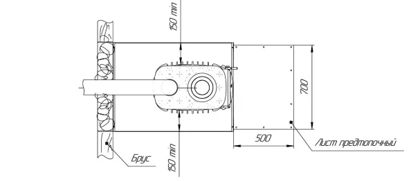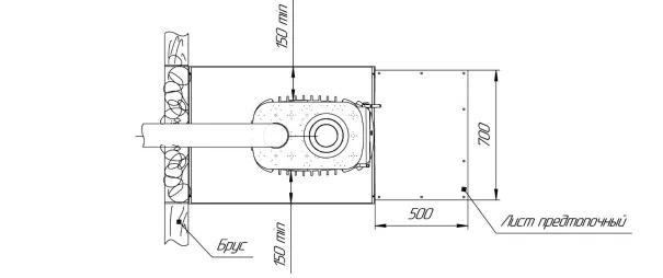 Рисунок 4. Схема установки печи с защитным экраном (монтаж дымосборника сзади)