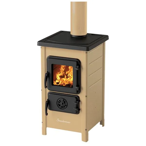 Печь-камин HAPPY Е CREAM - буржуйка выполнена с высококачественной кованой стали и чугуна. Эмалированные стенки придают печи современный глянцевый дизайн. Дверца топки, зольник, колосник и верхняя крышка выполнены из чугуна и покрыты матовой термостойкой краской. Жаропрочное панорамное стекло SCHOTT ROBAX® производства Германии. Печь имеет сложную систему воздушного потока , что позволяет использовать печь в режиме тления и длительного горения. Регулировка подачи воздуха осуществляется за счет заслонки на дверцах зольного ящика.
