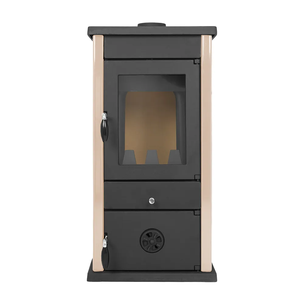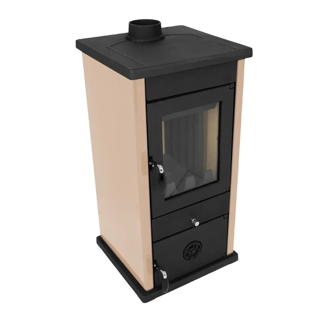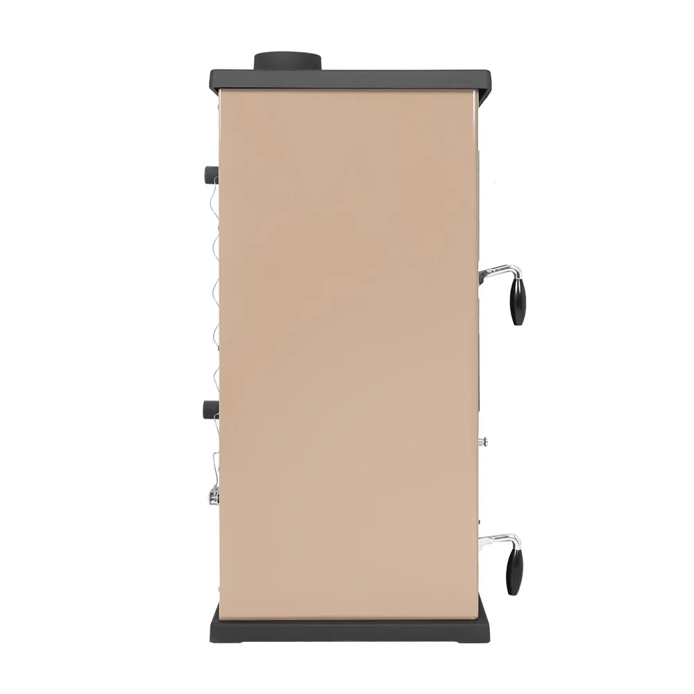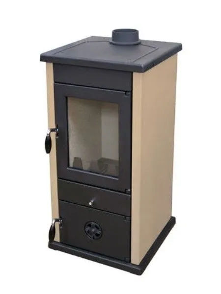 Печь-камин THERMO VESTA PLUS CREAM - дровяной камин с водяным контуром предназначен для теплоснабжения жилых помещений, оборудованых системами водяного отопления. Печь может подключаться к системе центрального отопления вместе с другим котлом на твердом топливе или самостоятельно. Печь-камин изготовлена из чугуна и эмалированной стали. Эмалированное покрытие обеспечивает продолжительный срок службы печи и отвечает за эстетичный внешний вид. Топочная камера футерована плитами из вермикулита, позволяющими выравнивать перепады температуры и продлить срок службы прибора. Дверца топки укомплектована термостойкой стеклокерамикой.