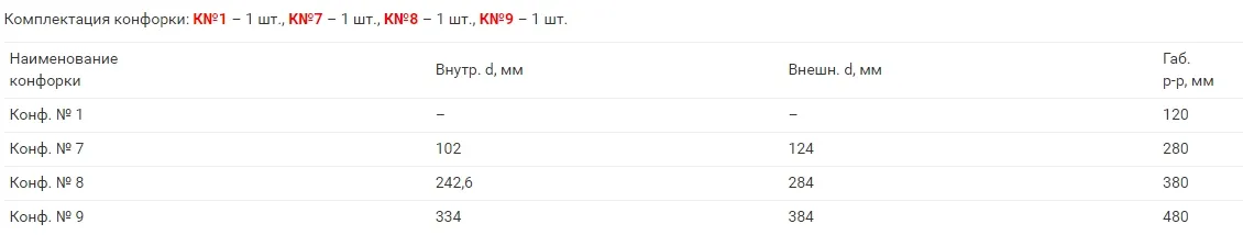 Диаметр конфорорки |