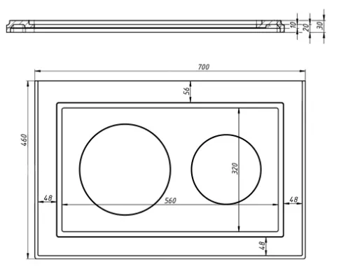 Чугунная плита используется в качестве варочной поверхности и устанавливается в отопительные печи или комплексы гриль-барбекю. Оснащена двумя конфорками разного диаметра 340 мм и 265 мм, что удобно для приготовления сразу нескольких блюд или нагрева воды.