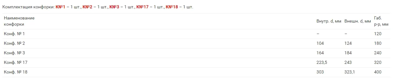Диаметр конфорорки |