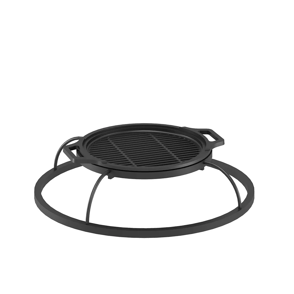 Рабочее кольцо диаметром 380 миллиметров соединяется с кольцом-подставкой стальными прутками диаметром 10 миллиметров. Оно размещается на высоте 10 см от нижнего кольца. Достаточное расстояние от дна чаши до кольца (28 см) позволяет разместить на адаптере не только плоскую решётку-гриль Везувий диаметром 38 см, но и глубокую посуду: сковороду, казаны Везувий и Сербский казан 14л. Высота адаптера позволяет совершенно спокойно подложить в костровую чашу дров или поворошить угли в глубине самой чаши. Оптимальный размер посуды, устанавливаемой на этот адаптер, удобен для готовки в небольшой семье из 4-5 человек.