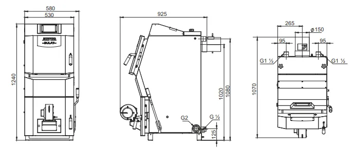 Котел полуавтоматический твердотопливный отопительный Bulat Turbo предназначен для теплоснабжения индивидуальных жилых домов и зданий коммунально–бытового назначения, оборудованных системой водяного отопления с принудительной или естественной циркуляцией, горячего водоснабжения с помощью бака косвенного нагрева, в открытых и закрытых системах отопления с максимально допустимой температурой теплоносителя 85°C и максимально допустимым давлением 0,3 МПа.
