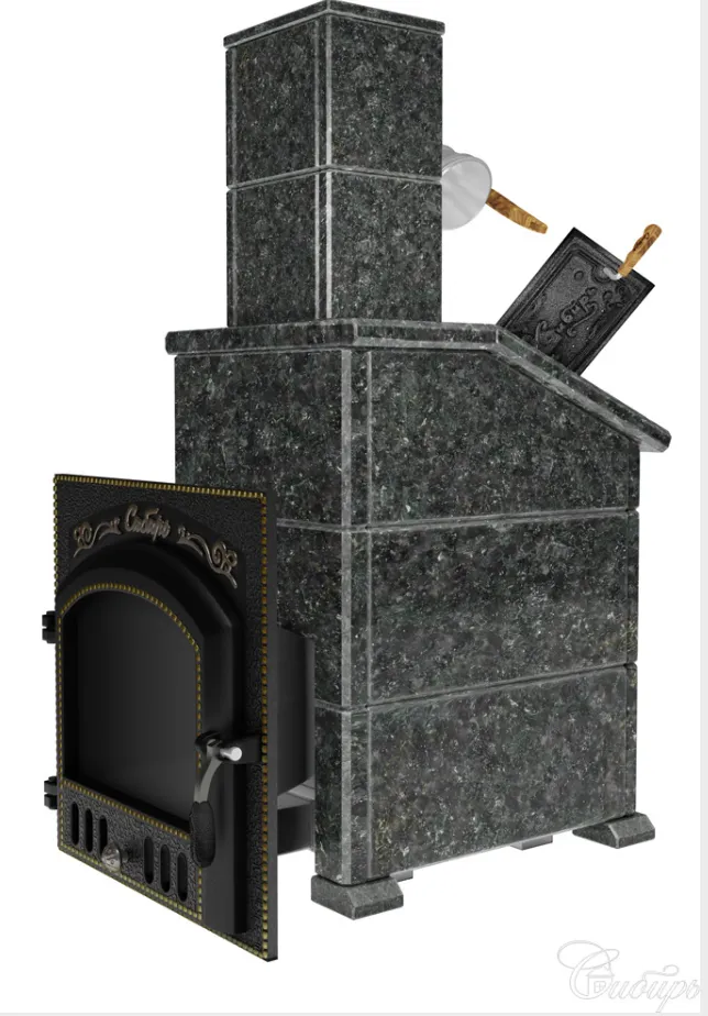 Банная печь премиум-класса «Сибирь-25» в облицовке «Президент» из натурального камня пироксенит – это новая модель в линейке печей, производимых заводом «НМК». Предназначена для установки в небольших парильных помещениях,объемом от 18 до 25 м3.
