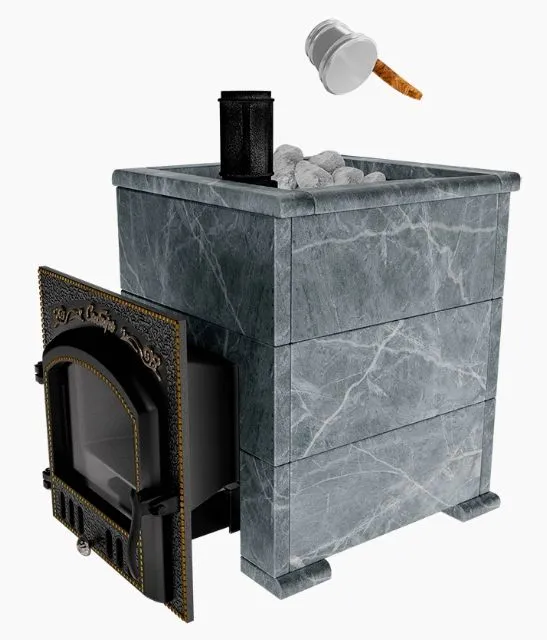 Премиальная банная печь Сибирь 40 дверка 700х700 в облицовке Оптима талькомагнезит