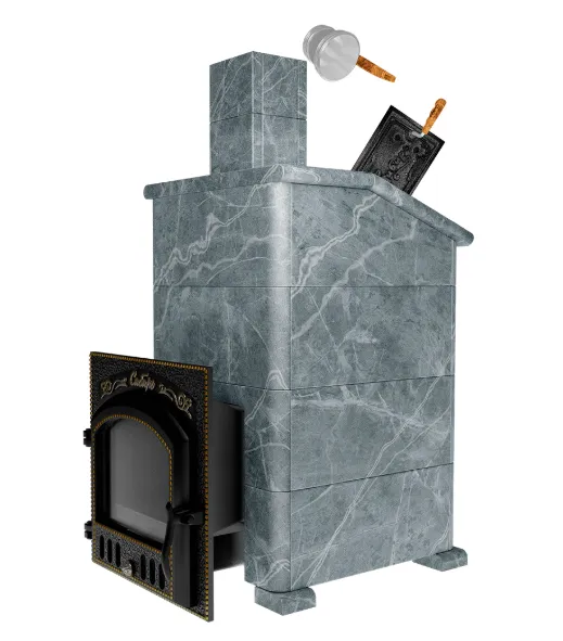 Премиальная банная печь Сибирь 40 3К Дверка 545х545 в облицовке Президент талькомагнезит