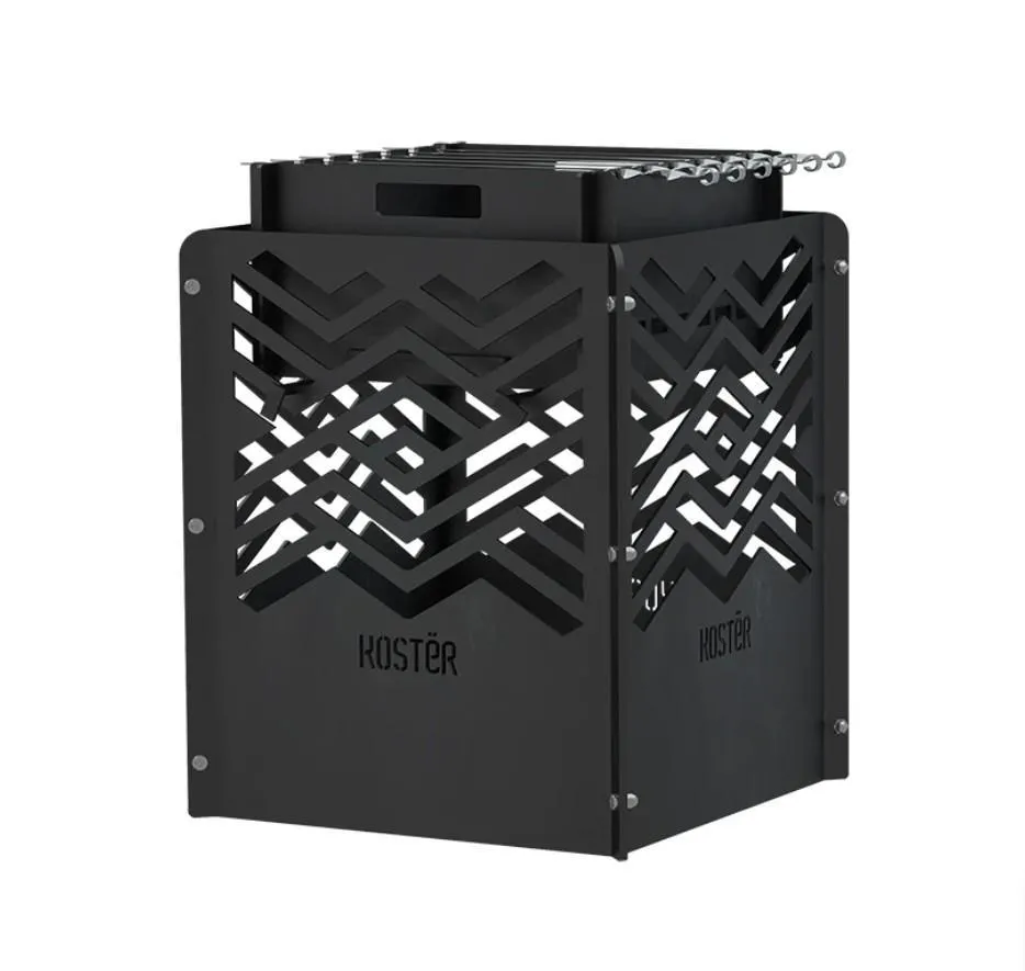 Очаг-мангал представляет собой конструкцию из углеродистой стали, которую можно собирать с помощью системы пазов без применения резьбового крепежа и инструментов. В сложенном виде он занимает минимум места и легко помещается в багажник автомобиля. Декоративное ограждение КУБ служит одновременно подставкой, ограждением и украшением придомовой территории. В четырёх стенах проделаны фигурные отверстия для вентиляции. В результате получается печь-мангал универсального назначения, подходящая для приготовления еды на костре и обогрева людей, собравшихся прохладным вечером на свежем воздухе.