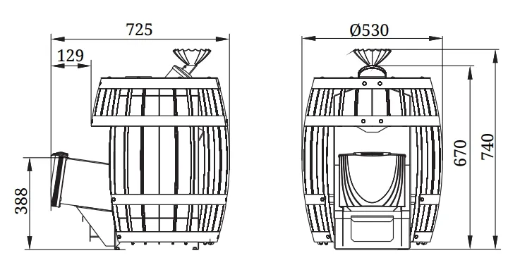 Разборная конструкция ограждающего кожуха существенно облегчает транспортировку печи.
