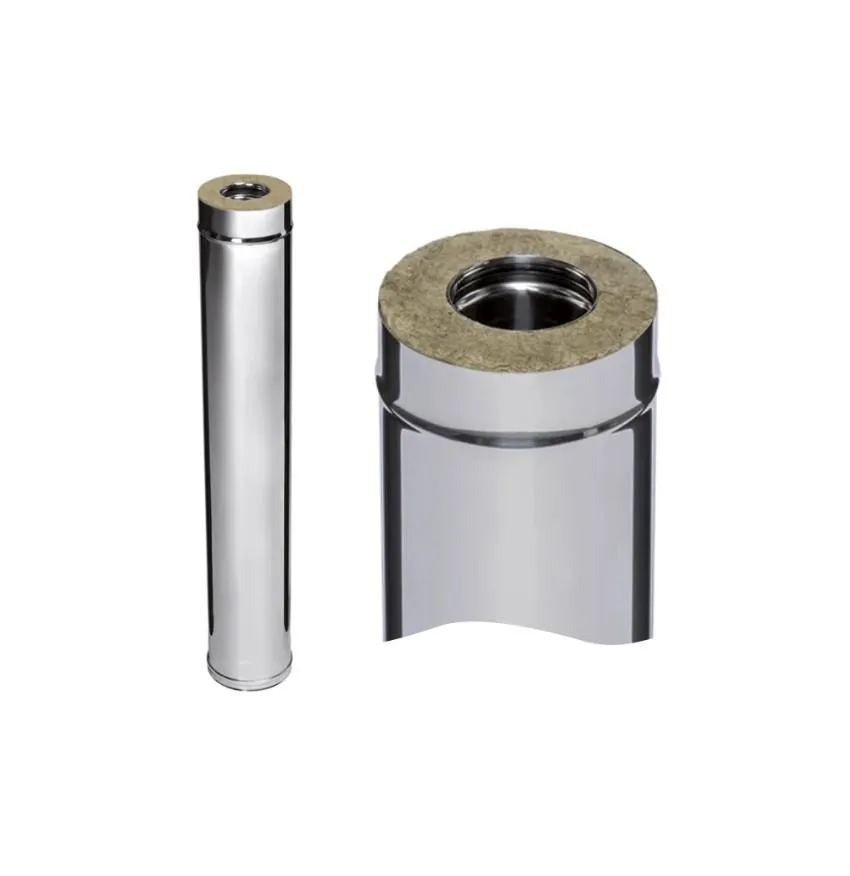 Толщина внутренней трубы 0,8 мм из стали AISI 430 обеспечивает повышенную устойчивость к термическим нагрузкам и коррозии в агрессивной среде дымовых газов, гарантируя надёжность даже на критических участках дымохода.