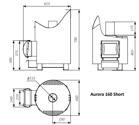 Стальная банная печь Aurora 160 Short (дверца со стеклом)