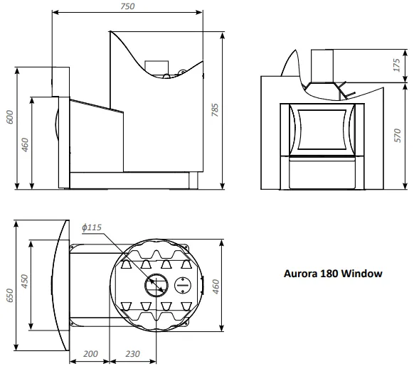 Стальная банная печь Aurora 180 Window (дверца со стеклом)