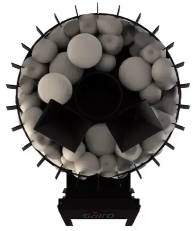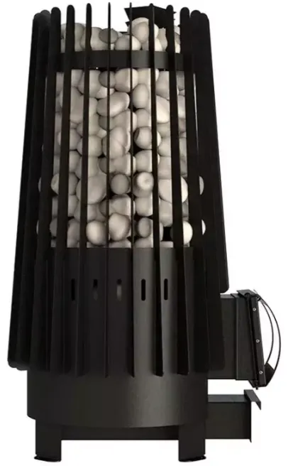 Открытая каменка снижает инфракрасное излучение металлического корпуса печи, выдавая мягкое, не обжигающее тепло и «классический» пар при подаче воды на неё или во внутреннюю каменку со звуковым эффектом