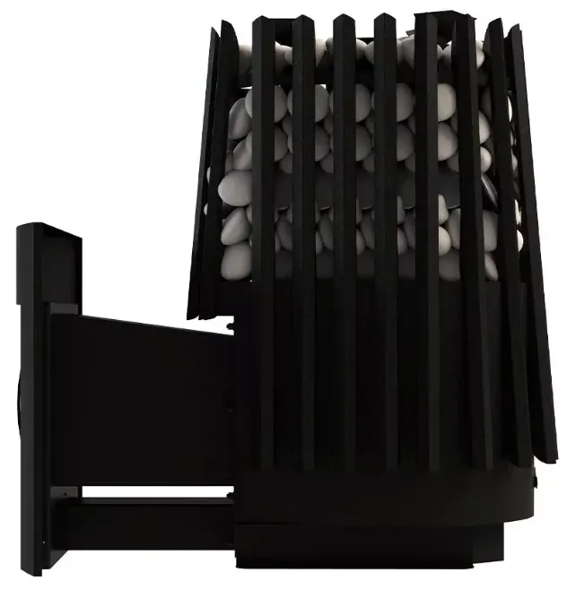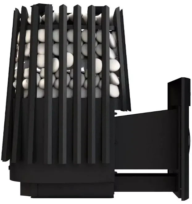 Открытая каменка снижает инфракрасное излучение металлического корпуса печи, выдавая мягкое, не обжигающее тепло и «классический» пар при подаче воды на неё или во внутреннюю каменку со звуковым эффектом