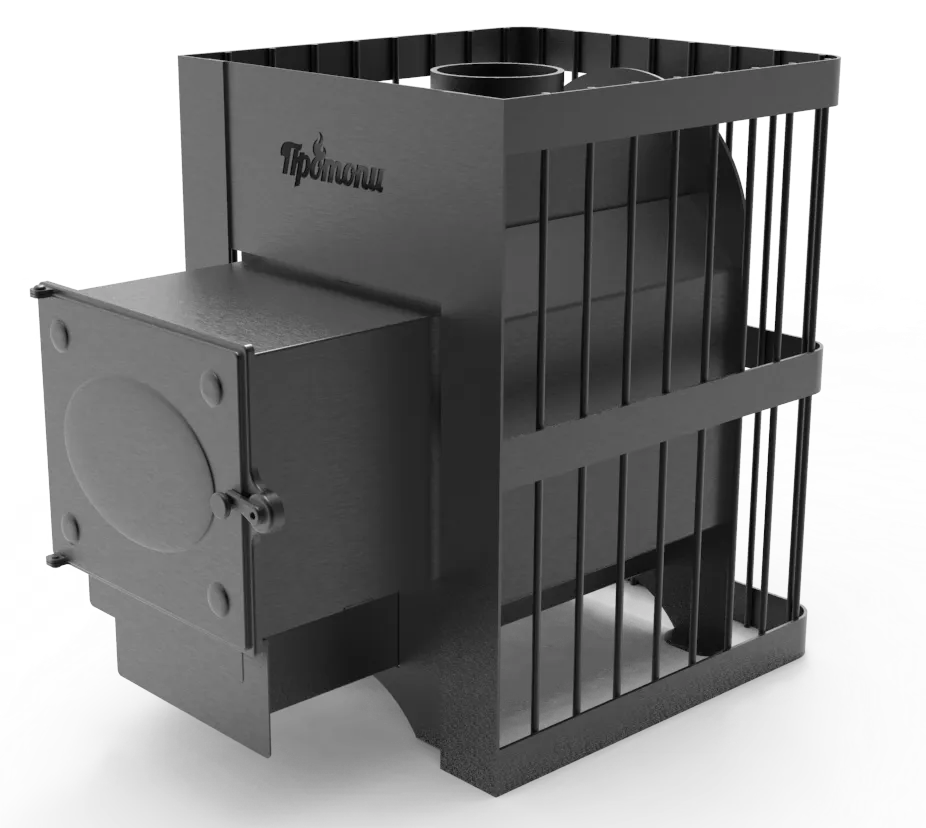 Каменка быстро разогревается малым количеством топлива, а затем долго обеспечивает комфортную температуру для парения. Топка и наружная решетка изготовлены из конструкционной стали. Наружные поверхности печи окрашены антикоррозионной термостойкой краской, выдерживающей воздействие высокой температуры - до +900 °С. Наружные поверхности корпуса окрашены антикоррозионной термостойкой краской, выдерживающей воздействие высокой температуры - до +900 °С.
