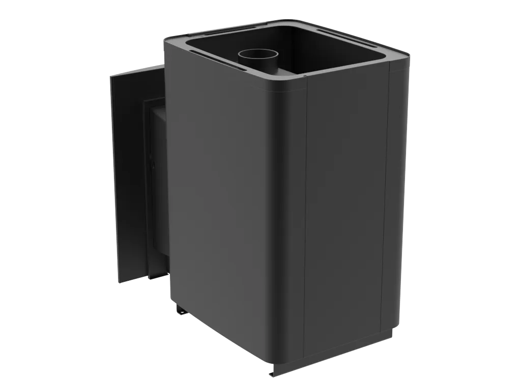 Стальная банная печь Парилка 24 – банная дровяная печь окраски "антрацит" с открытой вентилируемой каменкой, рассчитана на объем парной до 24 м3. Такая печь, с удлиненным топливным каналом, устанавливается в парильном отделении, а закладка дров производится из смежного помещения (предбанника, комнаты отдыха). Достоинством печи является то, что в каменку подается воздух, нагреваемый от стенок топки. Это позволяет ускорить прогрев камней, быстрее достигнуть комфортной температуры воздуха, улучшить парообразование.