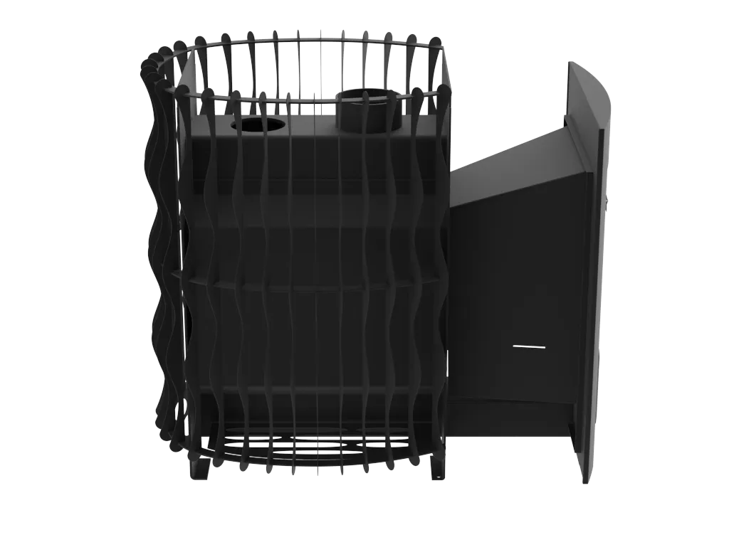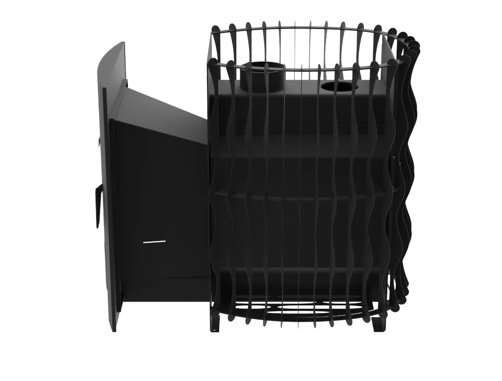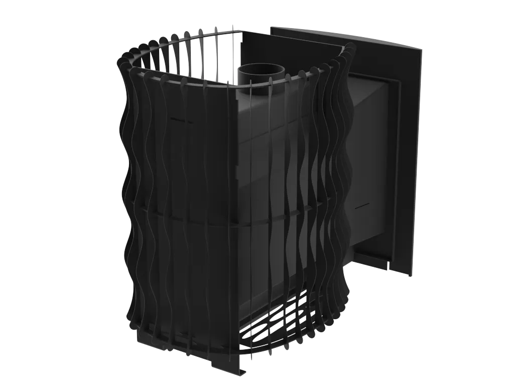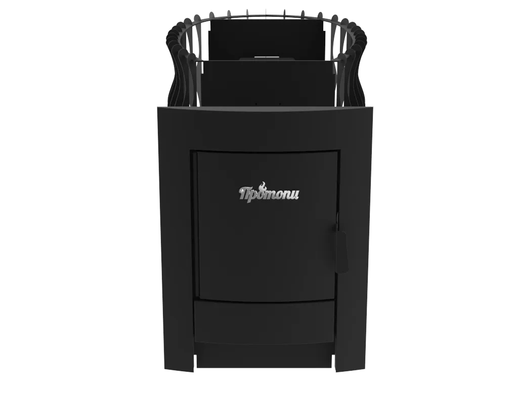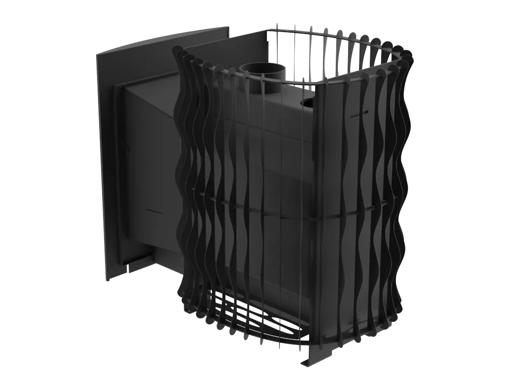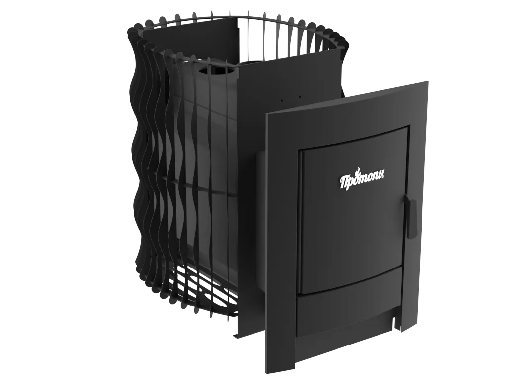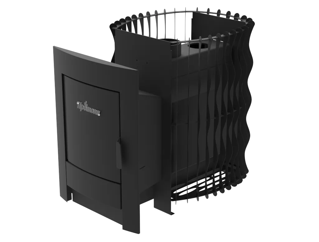 Стальная банная печь Подкова 18 – инерционная дровяная печь окраски "антрацит" для обустройства русской бани объемом до 18 м3. Модель отличается интересным дизайном - она снабжена волнообразной решеткой с верхним сечением в форме подковы. Модель с открытой вентилируемой каменкой имеет удлиненный топливный канал и устанавливается в парной, а дрова закладываются из смежного помещения (предбанника, комнаты отдыха).