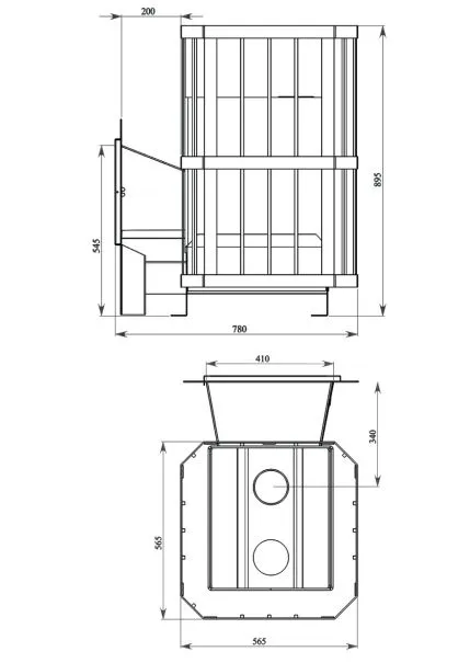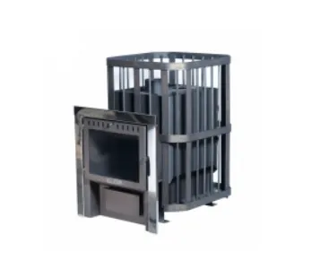 смещен вперед, что дает больше удобств при размещении камней в пространстве каменки и создает более комфортные условия в процессе парения