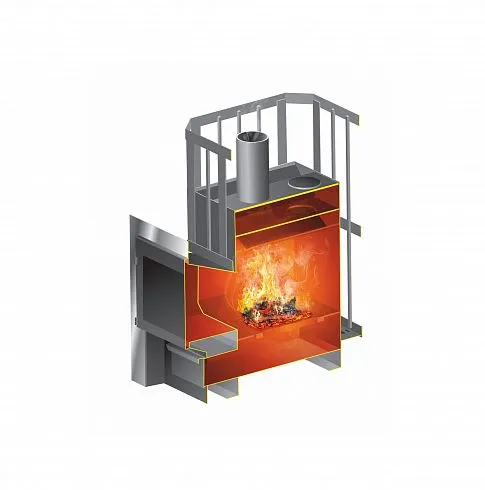 достигается за счёт усиления топочной камеры и каменки, которые изготовлены из стали толщиной 6 мм и отбойник пламени, установленный в топочной камере, толщиной 6 мм
