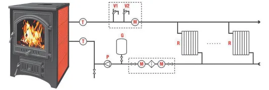 Рисунок 1. Типовая схема подключения печи-камина Т/О к системе отопления
