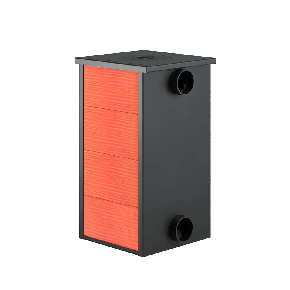 Камин изготовлен из высококачественной конструкционной стали с чугунной топочной и поддувальной дверцами. Чугунная колосниковая решётка и чугунная конфорка.