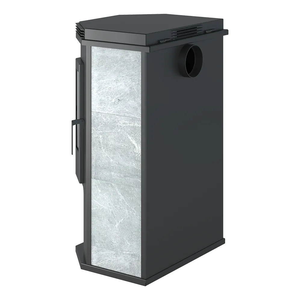 Снаружи печь отделана керамической плиткой. Для ускорения движения воздуха и прогрева помещения между облицовкой и корпусом печи устроены щелевидные конвекционные каналы. Дверь оснащена верхней и нижней системами подачи воздуха: снизу воздух подаётся в поддувальное пространство, сверху – на внутреннюю поверхность стекла. Патрубок дымохода диаметром 150 мм выведен на заднюю стенку печи.