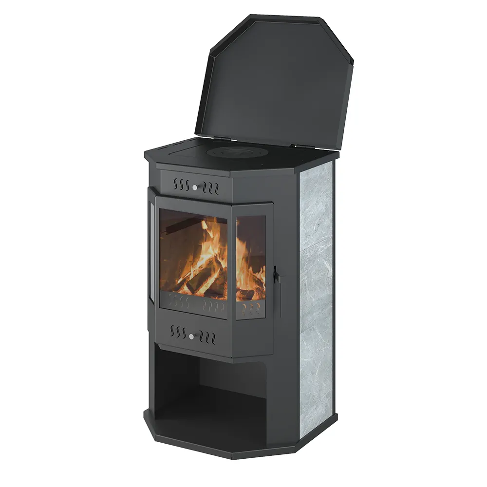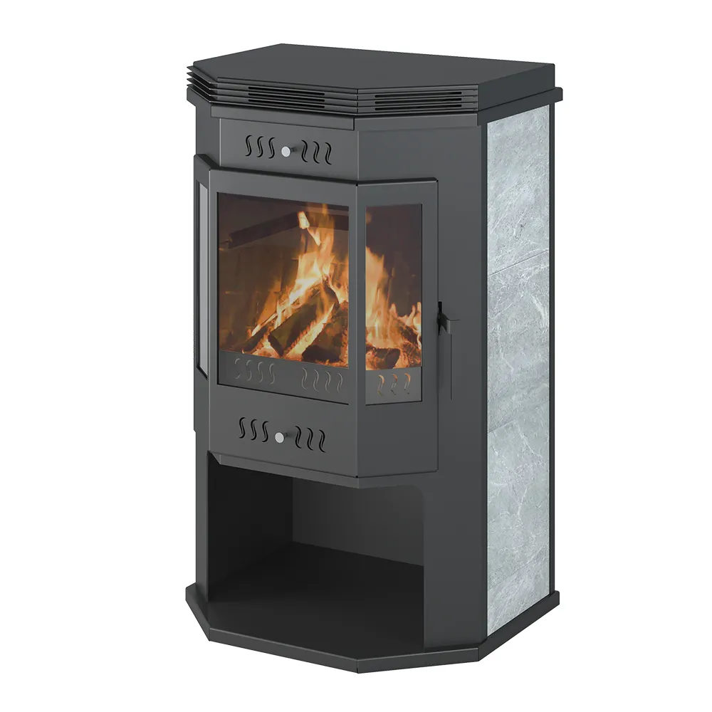 Печь-Камин ВЕЗУВИЙ ПК-05 Призматик с плитой Талькохлорит 12 кВт (200 м3) Ø150мм
