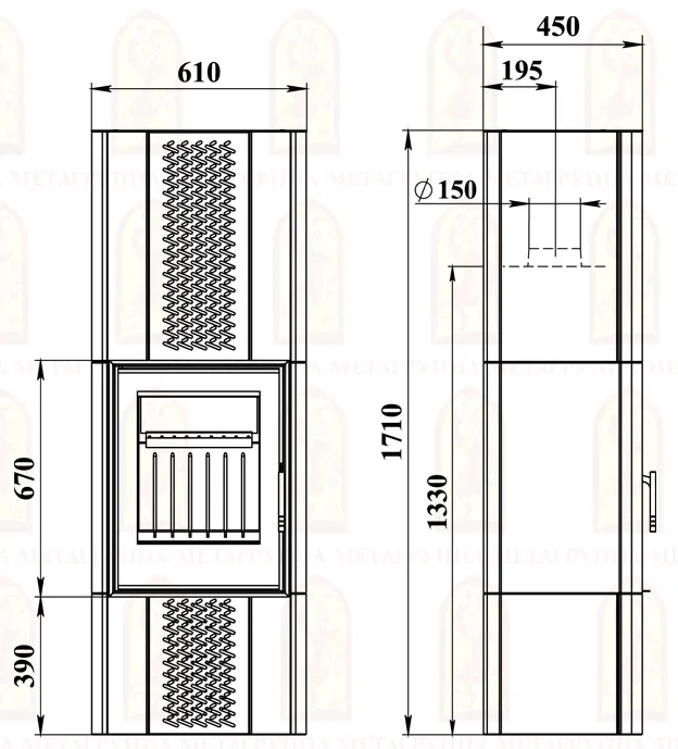 Габаритные размеры Печи-камина