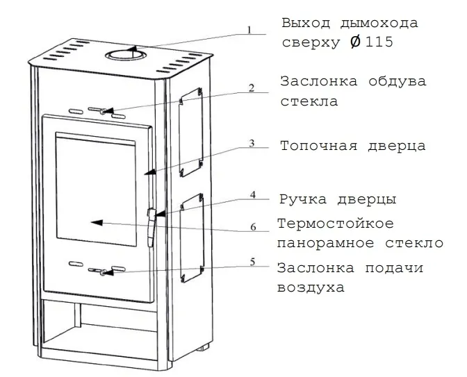для дров позволяет компактно размещать поленья внутри топки, защищая тем самым панорамное стекло от механических воздействий
