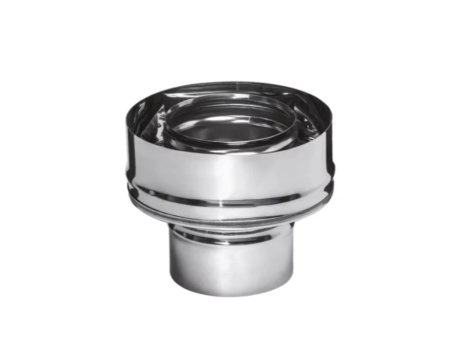 Специальный стартовый элемент для монтажа сэндвич-дымохода, обеспечивающий безопасный переход от одностенной к двустенной конструкции. Защита! Предотвращает перегрев строительных конструкций в зоне выхода дымохода.