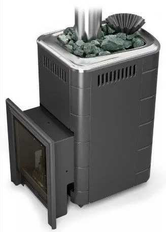 Модификация с большим светопрозрачным экраном, закрытой каменкой, цвет антрацит