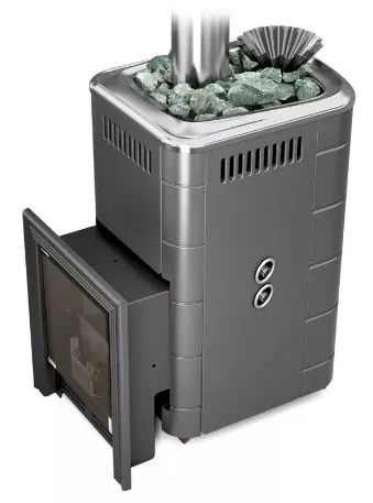 Система двойной подготовки пара дает легкий качественный пар. Благодаря увеличенной закрытой каменке, которая аккумулирует тепло для парообразования, печи и удается легко выдавать 60% относительной влажности при 60-65°C, что под силу далеко не всем газовым и дровяным металлическим печам.