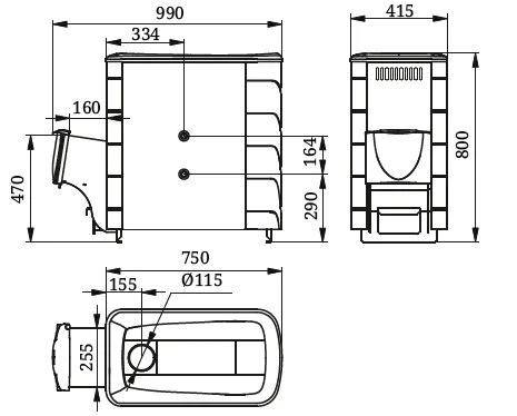 Максимально прогреть парилку в рекордно быстрые сроки позволяет улучшенная схема прохождения конвекционного потока с использованием вентиляционных отверстий на передней панели и специальной сетки по всему периметру печи