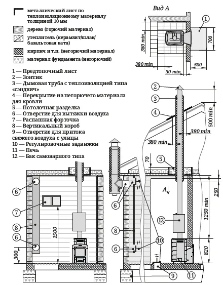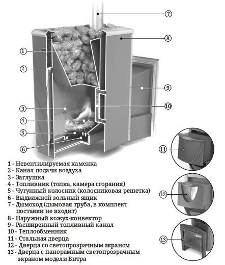 Специальный канал подает вторичный воздух в газоходные каналы печи для дожигания выходящих газов и качественного прогрева каменки.