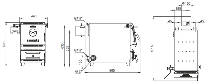В аппарате предусмотрена возможность установки нагревательного элемента (блока ТЭН). Аппарат должен устанавливаться в закрытом помещении, оборудованном приточно-вытяжной вентиляцией. Система вентиляции должна учитывать индивидуальные особенности помещения котельной и обеспечивать нормальную работу аппарата. Рассчитан на отопление небольших помещений.