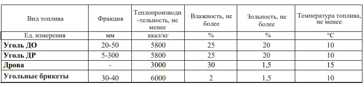 Виды и характеристики используемоего топлива