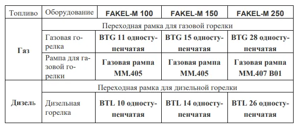 Варианты применяемых горелок при переходе с основного вида топлива