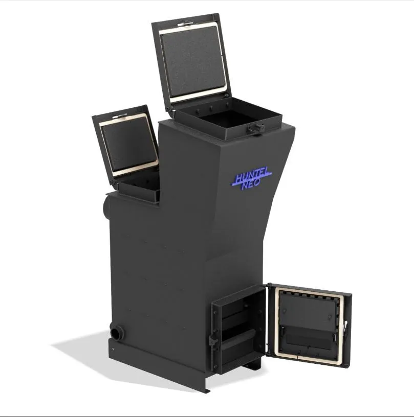 Примечание: Котел Huntel NEO 32 — идеальное решение для отопления частных домов и производственных помещений. Благодаря увеличенному объему загрузочной камеры и универсальности использования топлива, он обеспечивает длительное горение и высокую эффективность работы.
