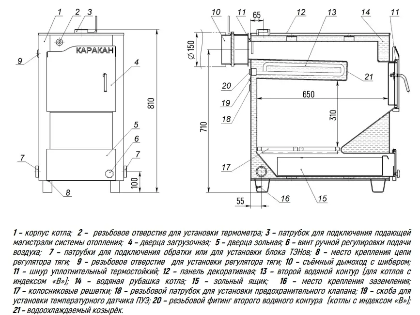 Котлы отопительные КАРАКАН предназначены для обогрева помещений площадью до 300 м². Встраиваются в любую систему отопления с давлением до 3 атм. Модификации: с плитой, с выходом дымохода назад либо вверх, одно- и двухконтурные, а также с возможностью установки газовой горелки. На всех котлах возможна установка блока ТЭНов и регулятора тяги.