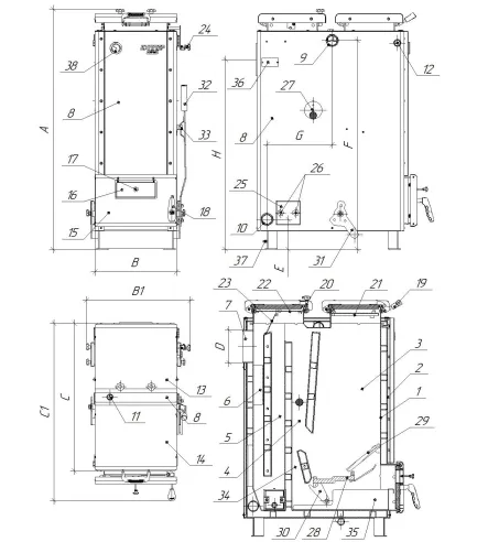 Отопительный котел Куппер КАРБО-34 (2.0) - относится к серии шахтных котлов, расчитаных на использование угля в качестве основного топлива. Но, конструктивные особенности отопительных котлов линейки Куппер КАРБО (2.0) позволяют эксплуатировать их с разными видами топлива.