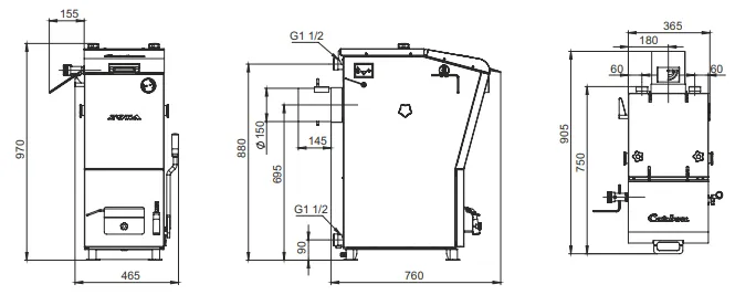 Уголь загружается в камеру сгорания через люк, расположенный сверху. Большое сечение загрузочного люка позволяет удобно загружать топливо без просыпания