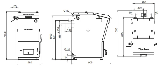 Уголь загружается в камеру сгорания через люк, расположенный сверху. Большое сечение загрузочного люка позволяет удобно загружать топливо без просыпания