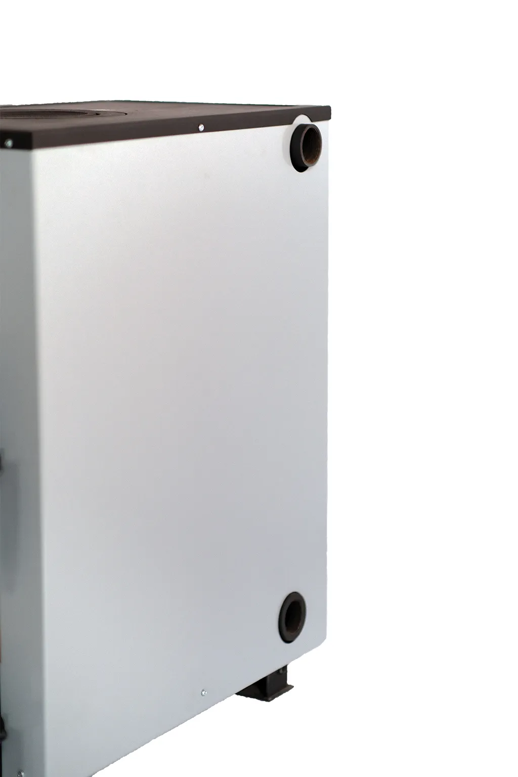 Конструкция корпуса котла "Сириус" позволяет устанавливать автоматический регулятор тяги в качестве дополнительной опции. Верхний патрубок подачи котла расположен в самой высокой точке корпуса, что предотвращает возможность скопления воздуха в системе отопления.