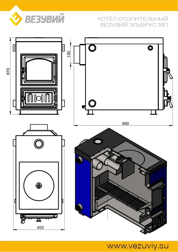 Основные характеристики отопительного котла Везувий "Эльбрус-18" с плитой «Везувий В1»