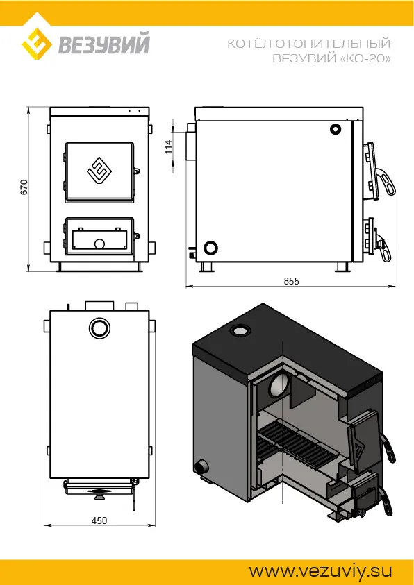 Основные характеристики отопительного котла Везувий "КО-20"