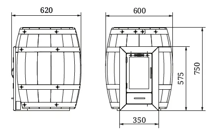 Имитация текстуры дерева клепок приближена к натуральной. Дизайн печи в виде бочонка очень органичен для интерьера любой бани. Бочка или кадушка, стоящая в бане – это очень естественно, просто и узнаваемо с незапамятных времен.