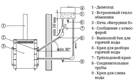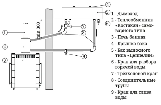 Рисунок 5. Схема монтажа системы нагрева воды с использованием теплообменника «Костакан» самоварного типа.